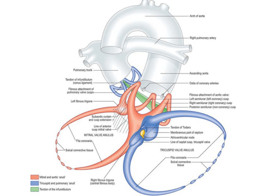 The table was gathered with content from multiple sources and few personal observations. Any doubts please check with more authentic sources. To understand fully, we need to read extensively the anatomy of the cardiac fibro-skeleton. (Saremi F, . Radiographics. 2017 )