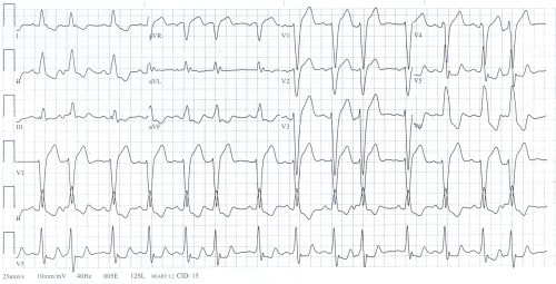 The qrs complex is wide , due to delayed conduction over non specialized fibres .The qrs becomes are tall due to temporal dissociation of RV and LV forces , which leaves the LV forces unopposed , thus a tall qrs is inscribed , without the neutralizing effect of RV forces.
