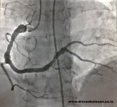 One may wonder why he underwent CAG when obstruction is least expected in such a vessel ! It was paradox of sorts , this man in spite of his wide bore coronary artery , was prone for coronary thrombus and one such episode landed him in our CCU . ( Please note both faces of atherosclerosis “obstructive and dilatory” can manifest in the same vessel in different combination.)
