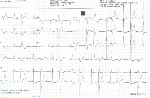 This  is the ECG  of  a  45 year old man with  H/O hypertension  and  chest pain .The general practitioner who first saw him alerted this  patient about a possible  heart  attack  asked to meet a cardiologist immediately. The cardiologist who  saw  this ECG   tended to confirm  the diagnosis  and advised admission in  a coronary  care unit .