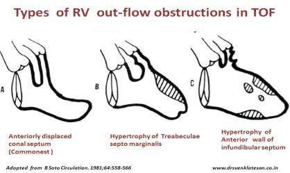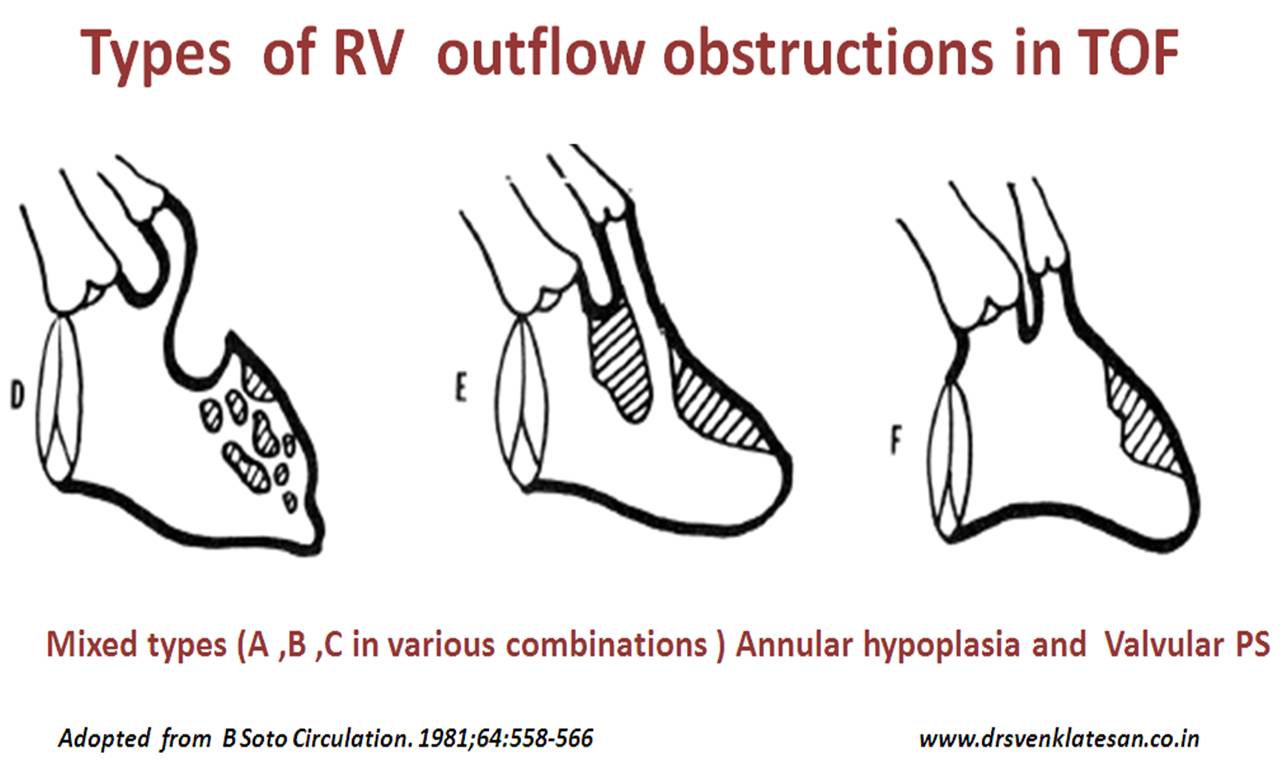 Soto described 6 types of obstruction in TOF in elegant anatomic and pathologic study in 1981. Every cardiology fellow must read this original article before going to the Board examination. http://circ.ahajournals.org/content/64/3/558.full.pdf+html