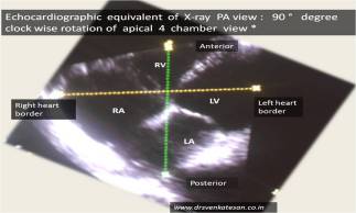 The following illustration  tries to create echo equivalent of transverse CT diameter by rotating apical 4 chamber view by 90 degrees.