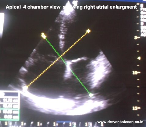 The right atrium was huge and measuring  more than 5 cms . This increased the CTR.