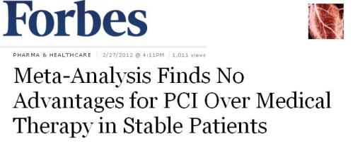 http://www.forbes.com/sites/larryhusten/2012/02/27/meta-analysis-finds-no-advantages-for-pci-over-medical-therapy-in-stable-patients/