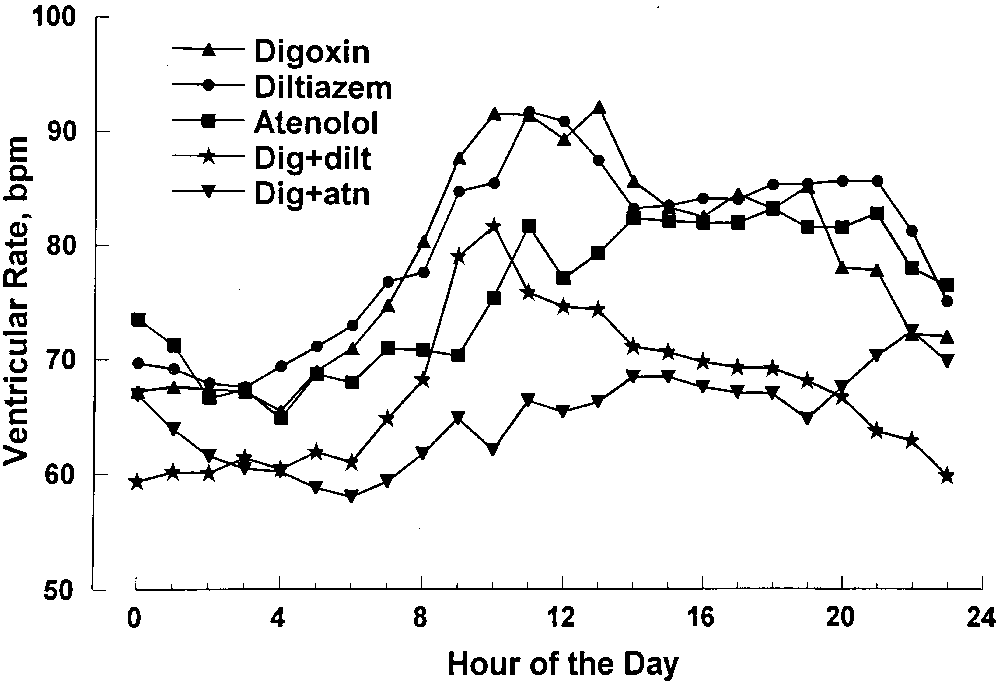 It is very clear, for optimal rate control we need a combination regimen , Digoxin must be one of them .Atenolol combined well with Digoxin , even as though Diltiazem resulted in maximum dip in nocturnal heart rate.