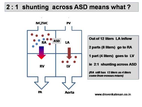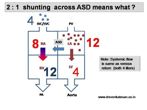 There was a big debate in one of my classes with cardiology fellows regarding the shunt quantification of ASD . We were talking about the significance of ASD shunting . We suddenly realised 2:1 left to right shunt is not a simple equation to comprehend . I was thinking 2:1 shunt would mean pulmonary flow would be twice the systemic flow . It was not to be !