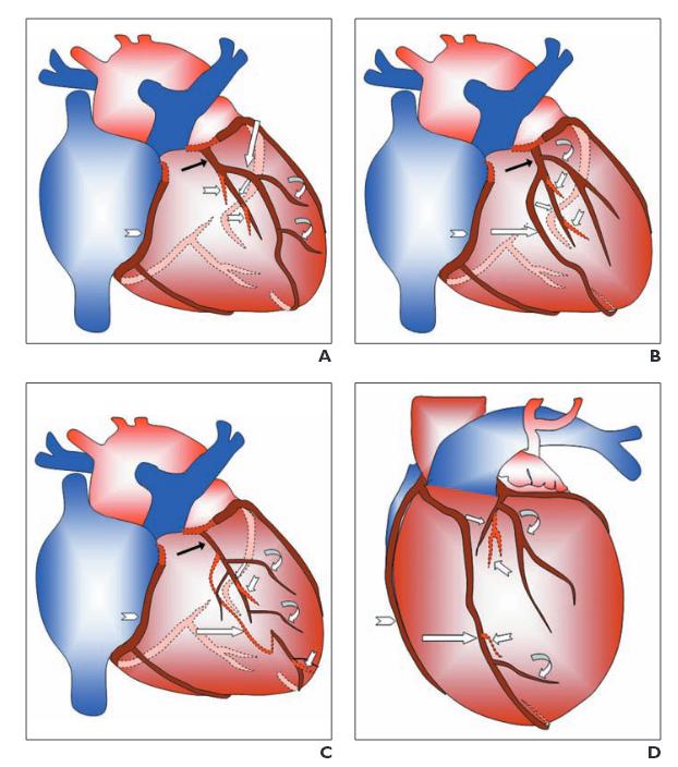 An illustration of first 4 types of Dual LAD .Note the type 4 originates from RCA. Image courtesy : Prachi P. Agarwal Ella A. Kazeroon . AJR:191, December 2008