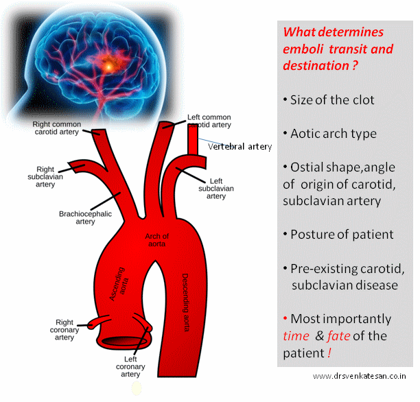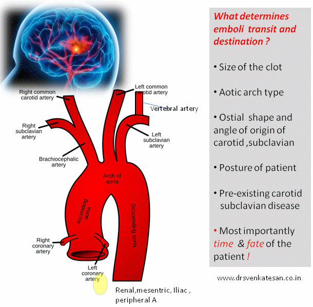 I told him in simple terms , “It is your destiny and the clot’s wish”. In fact , you are some what blessed as the clot did not enter the left side of the brain .If it had gone, your speech would have severely affected and you may not be asking this question to me ! It is true the clot do have other options to embolise , however they are still trouble some !