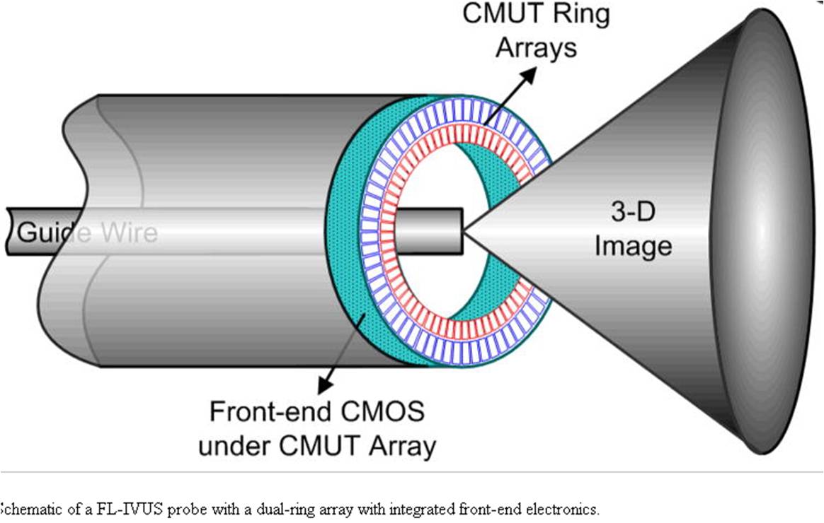 The exiting IVUS technology can only look sideways . Now a new vision is added by annular array of transducer at tip with CMOS sensor .The technology is just coming out it would be use for us in the near future .
