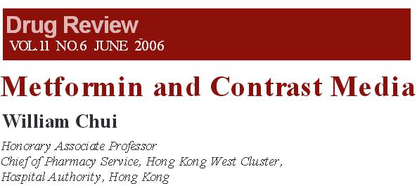 Metformin is one of most commonly used oral hypoglycemic drug listed by WHO as an essential anti diabetic drug. .It is a biguanide which blocks the hepatic gluoneogenesis . Since lactate is the major substrate for the process of gluco-neogenesis , excess of which spills into blood .Lactate is swiftly cleared by the normally functioning kidneys .Metformin is completely excreted by the kidney. Hence in patients with compromised renal function (or when contrast agents compete with Metformin in renal excretion ) high levels would not only cause lactic acidosis (> 5meq), it can also aggravate contrast induced renal injury resulting in a downward hepato -reno-metabolic spiral.