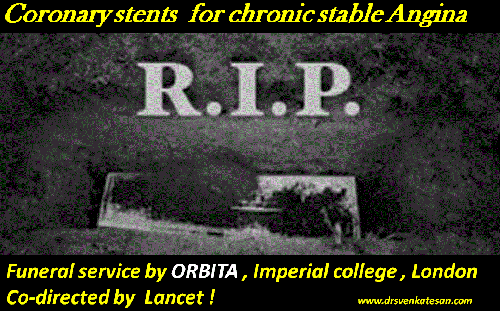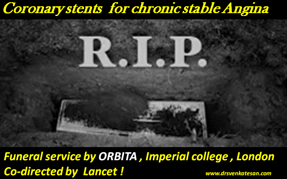 Posted in Cardiology -Interventional -PCI, Cardiology -Technology, Cardiology -Therapeutic dilemma, cardiology -Therapeutics, Cardiology -unresolved questions, cardiology journal club, cardiology wisdom, Medical education, Medical ethics, Uncategorized, tagged ABUSE OF STENTS, ACC AHA ESC ORBITA GUIDELIES, CHRONIC STABLE ANGINA GUIDELINES, drsvenkatesan, HOW ORBITA TRIAL WILL CHANGE MY PRACTICE, INAPPROPRIATE USE CRITERIA AUC STENTS, LANCET ORBITA STUDY, ORBITA COURAGE BARI2D FAME 2, ORBITA IMPERIAL COLLEGE, ORBITA study, ORBITA TRIAL LANCET, ORBITA trial review and comments, ORBITA VS COURAGE, reviewing ORBITA trial study critically, TCTMD 2017 ORBITA, WAHT WE LEARN FROM ORBITA STUDY on November 6, 2017| 2 Comments »