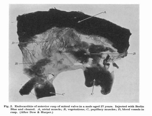 2.X-ray projection microscopy was used to image the valves after injecting radio opaque microparticles in the ascending aorta. This is probably the one of the few original studies done in UK in 1968 (Clarke et al ) it revealed significant  vascularity of the valve .It was found 16 % the tricuspid valve, in 10% of the mitral valve, and was maximum in Aortic valve (24%).