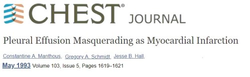 To label a left-sided pleuritic pain with ECG changes as ACS can never be considered as a serious error.However , rushing such patients to cath lab or lytic therapy along with heparin leads to more trouble. ER physicians should always keep in mind T wave inversion in isolation is indeed a rare cause* of ischemia. Still, as a physician first , we need to have a check list to rule out common non cardiac conditions. Pneumothorax is one another entity that can exactly mimic a STEMI with ST segment shifts and q waves.It’s also possible left sided pleural effusions produce q waves and mimic an old MI as this case report reveals.(Constatine A Manthous Chest 1993)