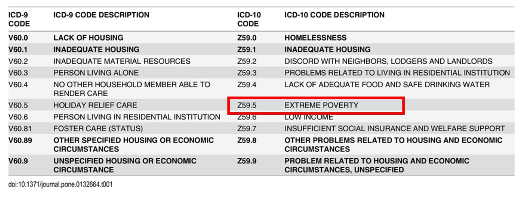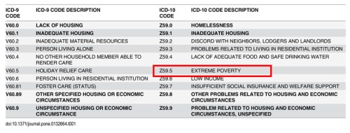 May I propose Z59.5A to be called Uncontrolled & manic desire for affluence ? Since it is made at the cost of fellow humans , it should be clubbed along with poverty as a worrisome disease. Once its included in the ICD manual , I guess it will be unethical to ignore this disease.