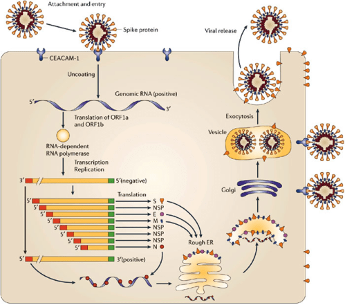 Viruses are essentially lifeless molecules (A nucleic acid RNA/DNA) .In the case of CoRoNA, it is the inbuilt RNA that acts as a commander in mischief. Ironically, it gets to life only when it attaches to the host cell. How a small bit of nucleic acid with a lipid cap infects a cell and becomes a deadly factory of new viruses and spread through the body remains a deep biological mystery.