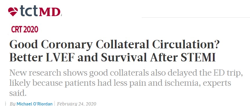 Coronary collateral circulation is one of the major determinants of symptoms and outcomes in chronic CAD. But, we generally shrug off the value of coronary collateral circulation in acute coronary syndrome. The fact is, it has a myocardial mitigating effect following sudden total occlusion.