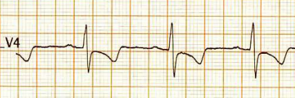 *Classical slope should begin at J point. Late downsloping has little predictive value as in this ECG.
