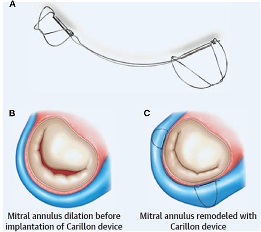 It is an afterthought, I think, from the makers of annular restriction device makers. MEER is found to be less effective in proportional MR.The Carillon device is a new arrival to tackle secondary MR .It is actually a wire that forcibly tightens the AV annulus inserted through coronary sinus . This modality takes advaantage of the aantomical proximity of coronary sinus to mitral annulus. Coronary sinus encircles and from a virtual wall along significant circumference of mitral annulus.