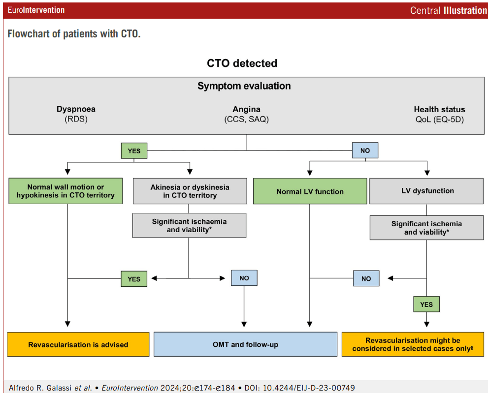 4.If symptoms are angina and it is refractory, one may consider CTO PCI. Never do it for relief of dyspnea, even if the guidelines suggest you to do so.