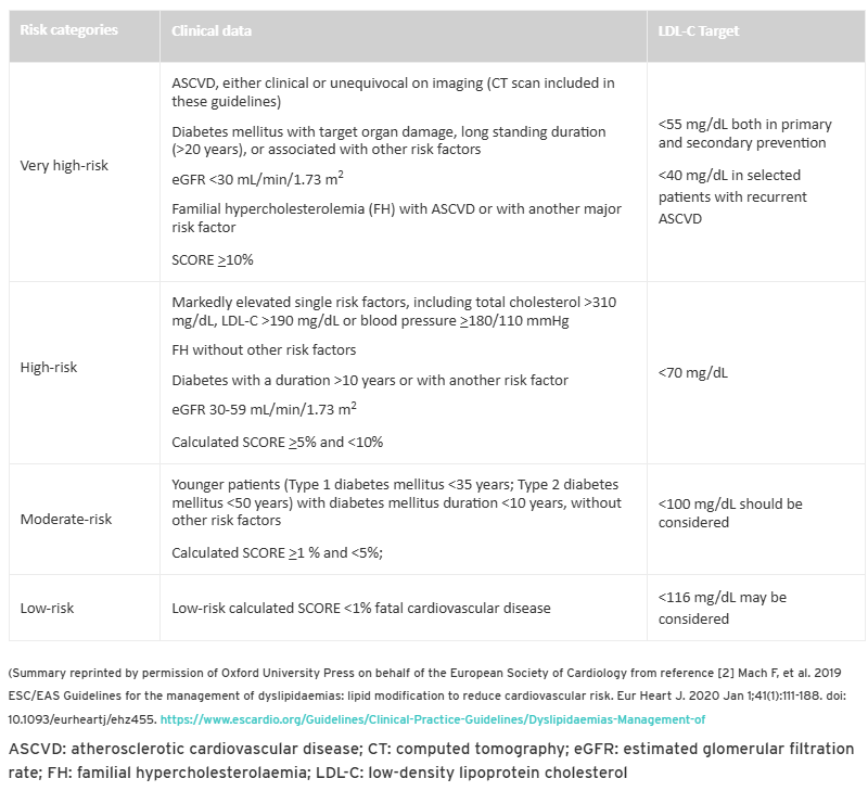 If you have any athero-sclerotic cardio vascular disease(ASVD) documented by clinical or Imaging , you belong to very high risk category. It clearly says the target is 55mg both in primary and secondary prevention.