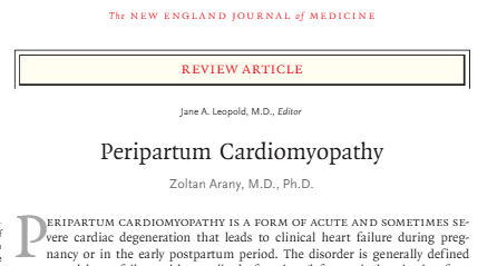 Here is astate of the art review article on peripartum cardiomyopathy from NEJM that came out in Jan 2024. It is one of the comprehensive article on the topic. Everyone will relish, and would like to preserve it as well . Click on the image for the PDF of the article .Sharing here purely for the academic purpose with the courtesy and thanks to NEJM group.