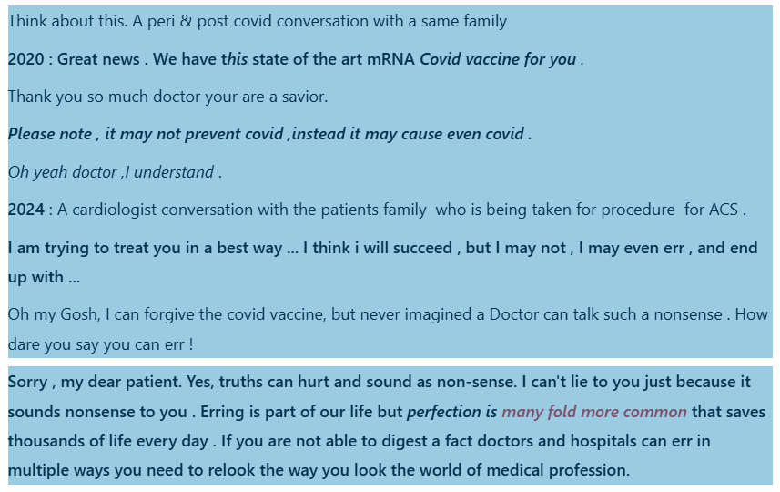 “One of the important reasons for this miscommunication, squarely lies with us. We need to admit, un-intentional errors is indeed a big problem in medical profession, as in any other field”