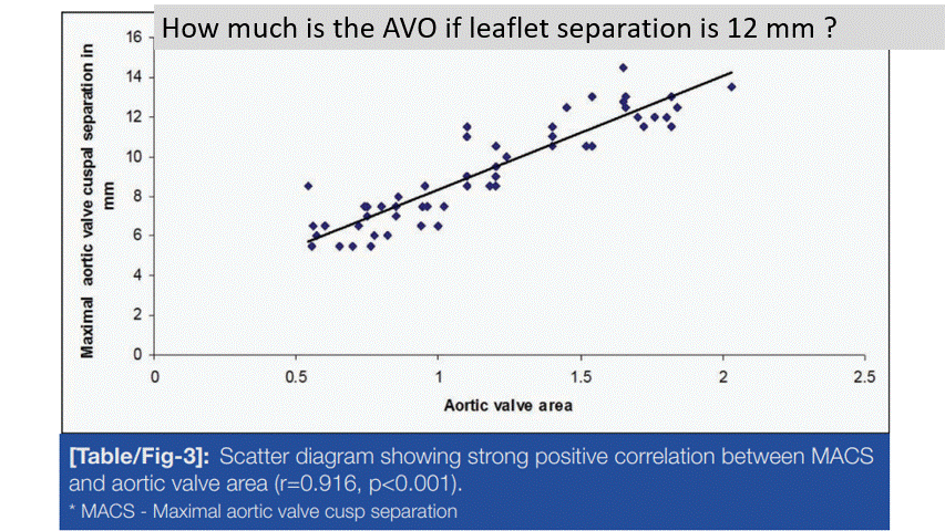 Here is a simple research paper on echocardiography , yet comprehensive, that assessed aortic leaflet separation distance with mean aortic gradient and valve area in patients with aortic stenosis. Kudos to the authors. It adds more pride, a validation of an important echo parameter in aortic stenosis has come from my part of the country, in a small town of Kerala .I am sure , It deserves to be published in JASE or ESC Imaging journal, which would have spread the importance of this study to more audience [(Jayaprakash et al 2017)