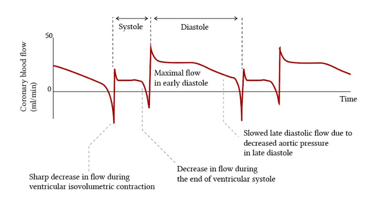 The classical illustrations that are found in cardiac physiology literature about the dominance of coronary blood flow during diastole (Image source Ref 2)