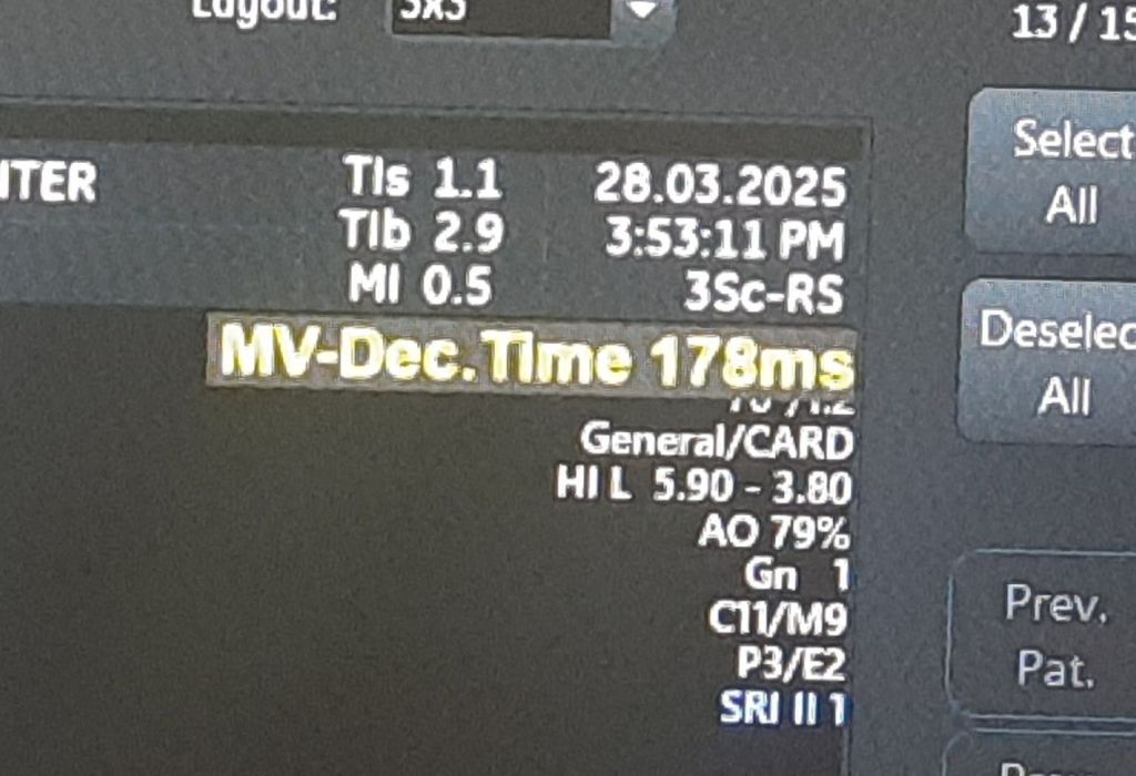 52-year-old man with HT, and LVH with mild LAE. His E DT was very much normal a1 178 ms. He has a good functional capacity. I expected a grade 2 diastolic dysfunction. But, none of the other parameters were convincing. Used to think, if LA is enlarged, it must be a little advanced form of diastolic dysfunction. Though It is still true in many, but, this case, demand us to dwell into these two important parameters of LV diastolic function.