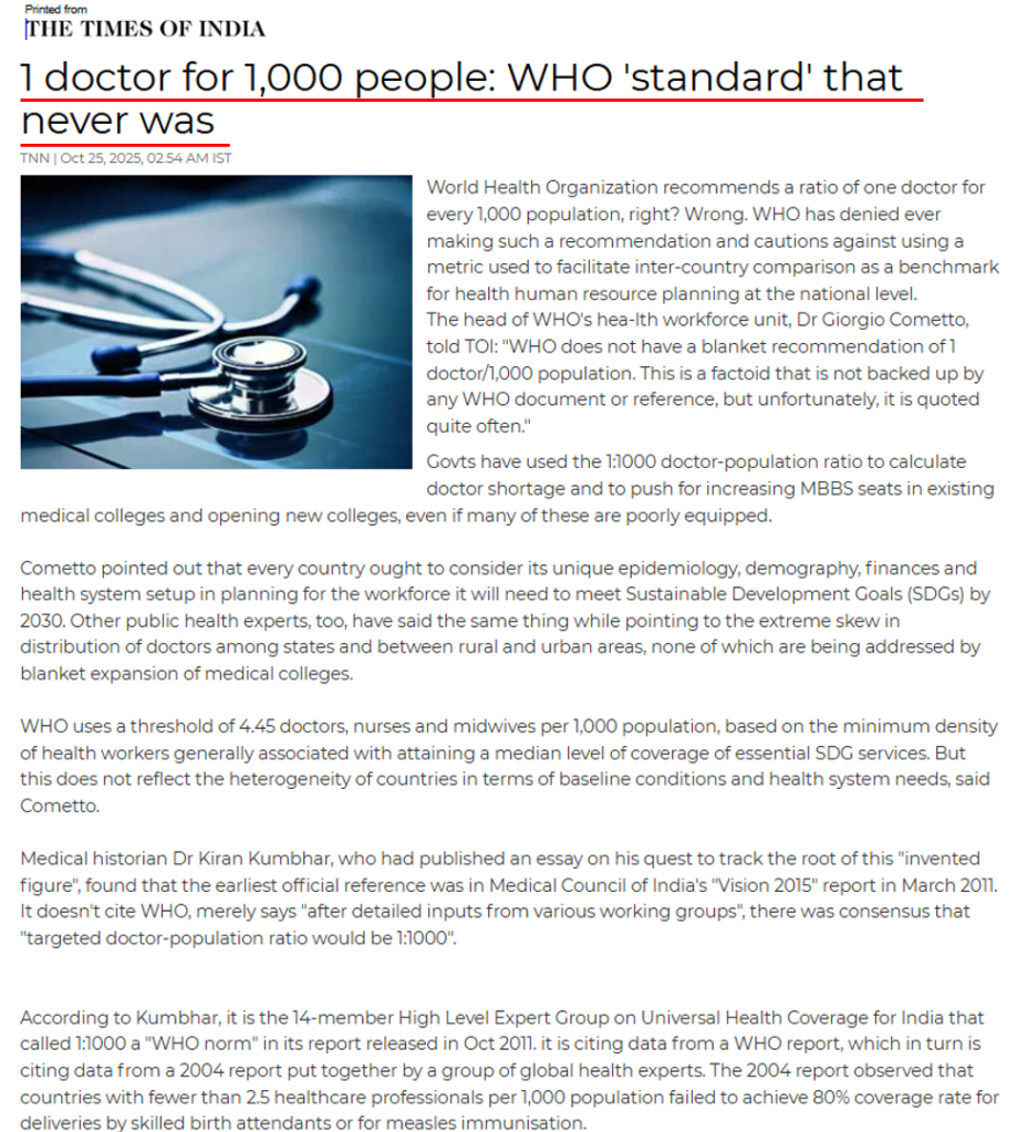 Sometimes, someone, suddenly asks some silly question. The problem is, we don’t have much of expertise and wisdom to tell whether the question is silly or serious . The so-called sacred ratio of ideal doctor population ratio (1:1000) has come under vigorous scrutiny as the number of observational studies found little relationship between the number of doctors and the health of a society, community, district, or even a country.