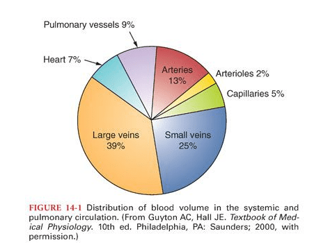 It would be silly to remind, it’s the same five liters of blood, that circulates across, both the arterial and venous system. But, its journey one away from the heart, and the other towards the heart are strikingly different. They are subjected to various hemodynamic forces, travels different terrains, at different speeds, thousands of kilometers of microvasculature along the cardiovascular highway, yet merging with each other every 15 seconds or so, at the pulmonary junction box. Have a look at the following images, to understand the distribution of the blood volume.