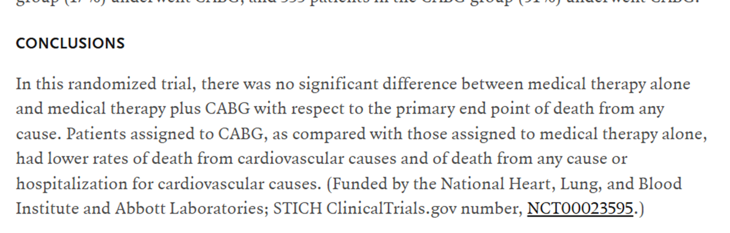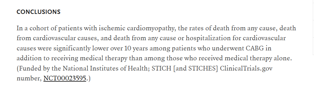 Lastly , and most importantly, it is the intensive medical management and life style modifications, that will determine, whether CABGs are going to work,  as it  did , to the lucky patients of STICHES cohort.