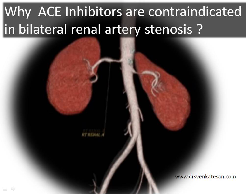 Note: ACEI does not reduce the renal blood flow directly but the glomerular perfusion pressure drops hence precipitating acute renal function deterioration.