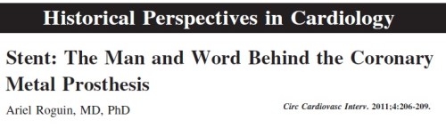 Later on  , the name Stent came into vogue . Surprisingly stent is not a technical name . It is a name of British dentist. To know more about the historical aspects of coronary stents read the following review from Circulation.