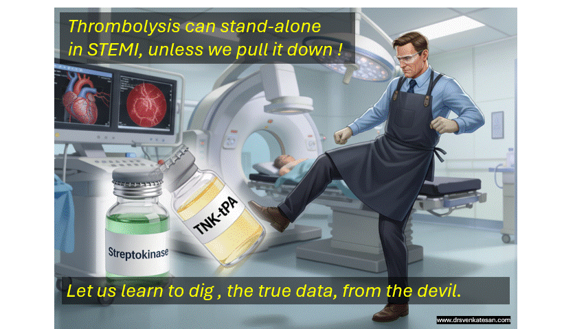 Modern cardiology’s PCI dogma is trying to blind thrombolysis’s enduring truth. A village PHC’s or ER crew’s humble hand injections at 30 minutes could salvage more myocardium than a helicopter transferred PCI, in a star rated cathlab.