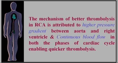 • It has been a consistent observation  failed  thromolysis  is more frequent in anterior   or LAD myocardial infarction.