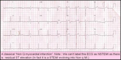 The problem here is NSTEMI getting converted into STEMI  is quiet common and has no nomenclature issues . But  when   STEMI down grades  into NSTEMI  there is apparent  nomenclature incompatibility .This category of  patients have  no other labelling option other than “A STEMI evolving into non q MI”. Because one can’t label  STEMI  evolving into NSTEMI as  many of  them  will  have a residual ST elevation as well.