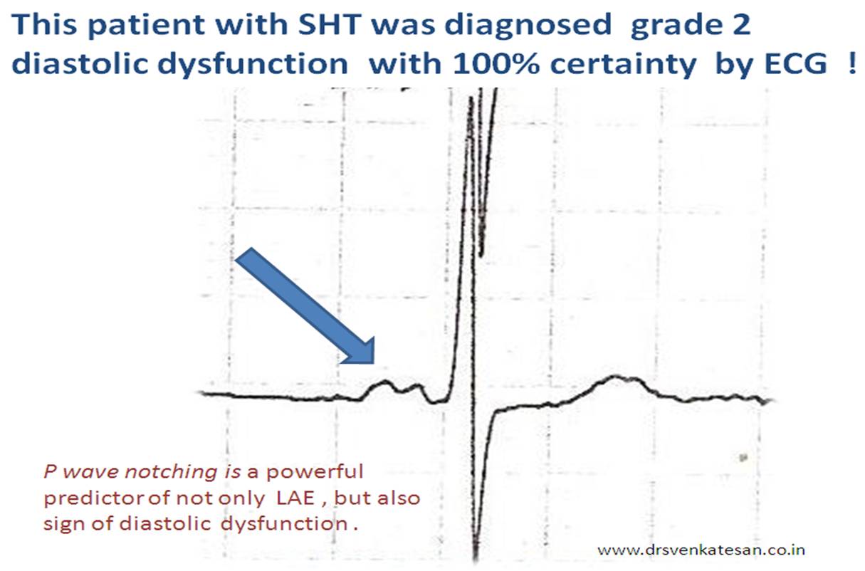 A well recorded and   analysed   ECG can  predict diastolic dysfunction  with fair  degree of accuracy .This fact need to be emphasized  by every one  .  Next to ECG ,  LA size and volume  by 2d echo are excellent parameters  to assess diastolic function in a long term fashion. Sophisticated  but  error prone ,  momentary doppler parameters are getting too much attention  at the cost of simple ,  shrewd ECG and 2D echo  !