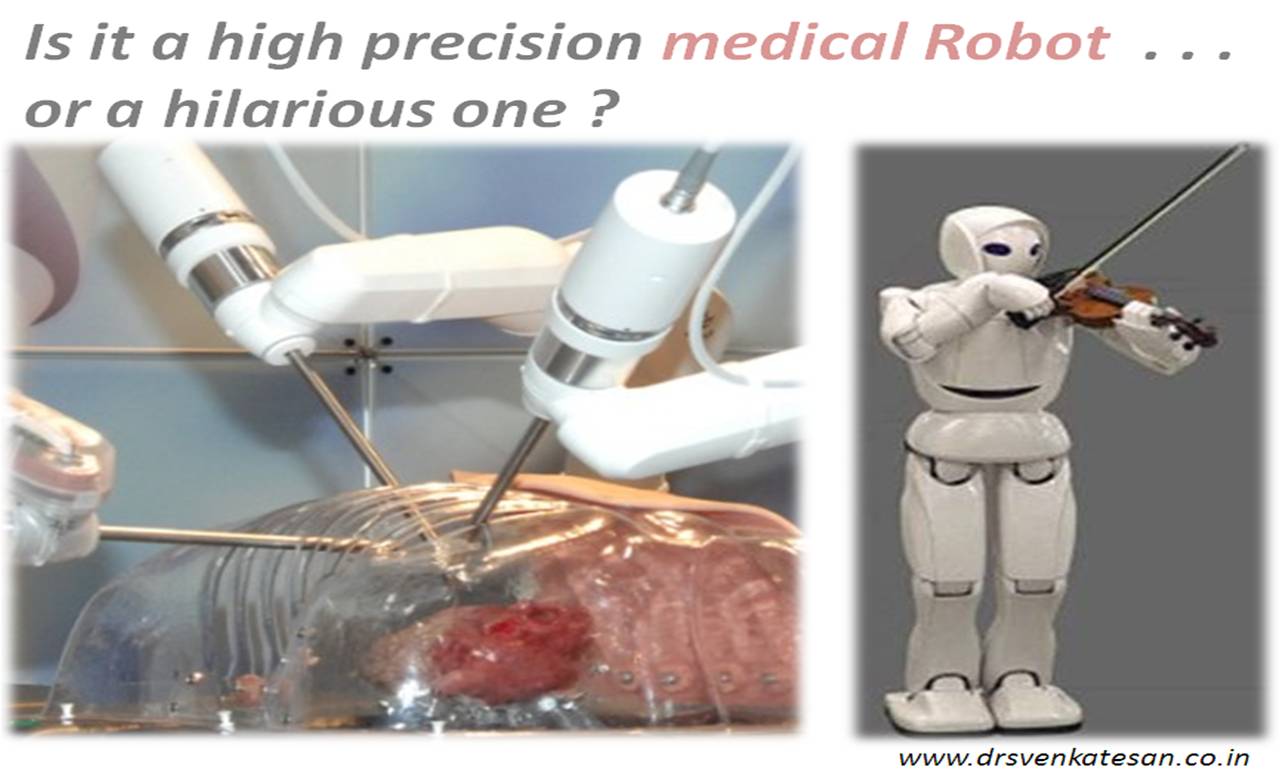 It is hilarious to note certain medical Robots* are primarily made to assist surgeon for which no assistance is required at all ! (I heard a story about a Robot which responds to voice command and pass on a knife for cutting and a gauze for wiping ! What a great medical discovery !)