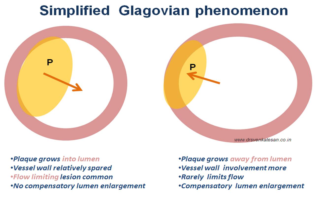 Further , in post Glagov days we realised mechanical factors like plaque stiffness, eccentricity , plaque mass effect, drifting , lipid core density, medial lysis , elasticity of elastic lamina all could determine the plaque movement.