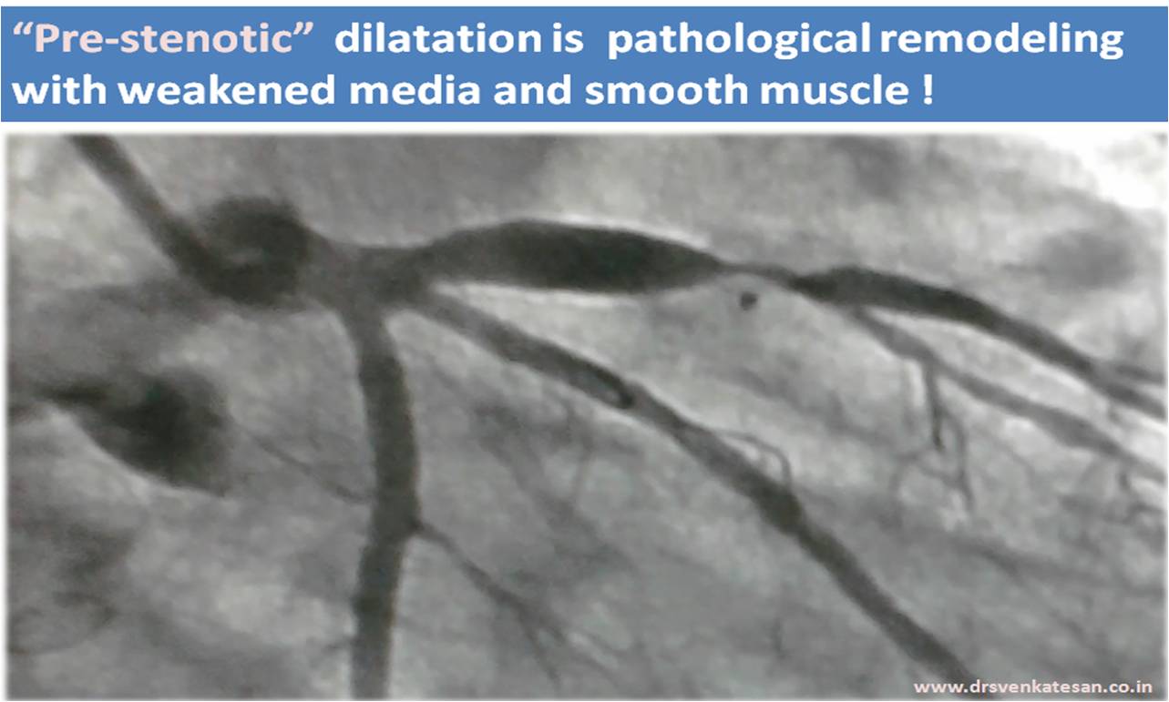 This is because , even though the inflation pressure is uniform within the balloon , the required apposition pressure is not the same .This is obvious as the lesion surface has a varying consistency and uneven surfaces . It is a huge guess to quantitate the relative contribution of thrombus and plaque within the 100 % occlusion that has resulted in the STEMI. Hence some areas may get over apposed and others lesser apposed. Further , the stent -vessel wall interface in all likely hood enclose a layer of clot .This is almost certain during complex primary PCI. One can imagine the sequel if this thrombus layer dissolves later ! (Edentulous stent )