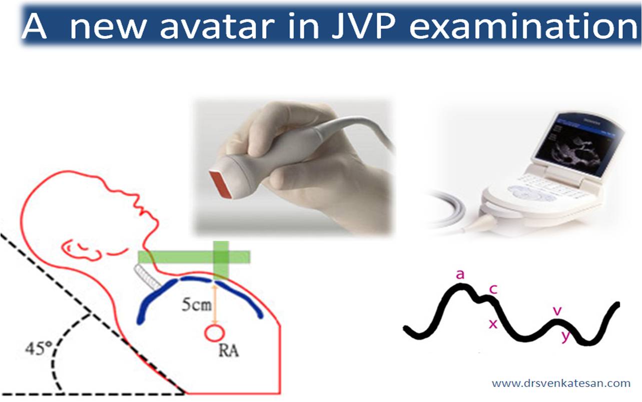 Looking at the neck veins for hours together has been a favorite pastime of our cardiology ancestors.Thanks to those sharp intellect , that has led us to this height of cardiovascular revolution. Measuring JV pressure by itself was considered a big science. Putting a patient in 45 degrees , marking the sternal angle, identify the oscillating venous column, measuring the vertical distance etc . . .