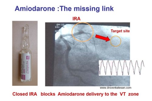 It was a simple conclusion. For Amiodarone to be effective IRA must be at least partially patent to enable the drug to reach the target tissue. I am not aware of any study on this issue. Request anyone to expand this study and publish it as a full paper. (Royalty-free research topic!) Please acknowledge the concept if you think it’s original.