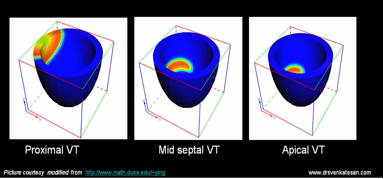 VTs originating high up in the ventricle( High septal VT,Proximal VTs) have more organised ventricular contraction  and they are more stable.Distal VT  originating  in the myocardium away from the conducting system has chaotic myocyte to myocyte conduction.These are very unstable.