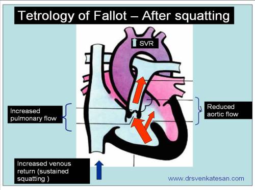 1. The Initial relief is due to trapping of deoxygenated venous blood in squat posture, which is similar to TOF